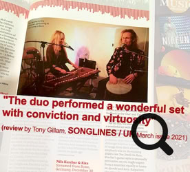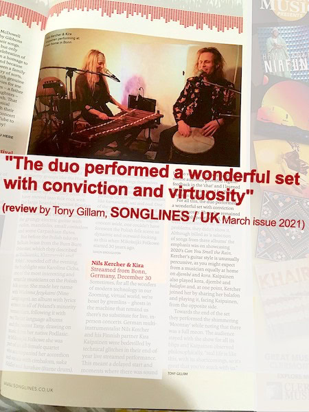 ‍new review of Nils Kercher & Kira Kaipainen’s live stream concert in the March issue of the UK based Songlines magazine: