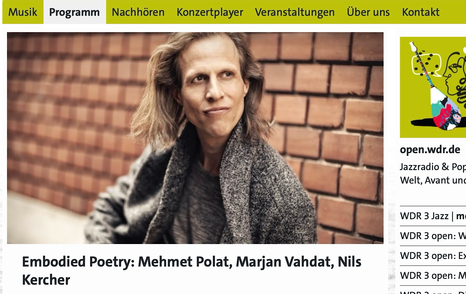 Public radio WDR 3: Nils Kercher’s music in the show „Open: World“ titled „Embodied Poetry:“